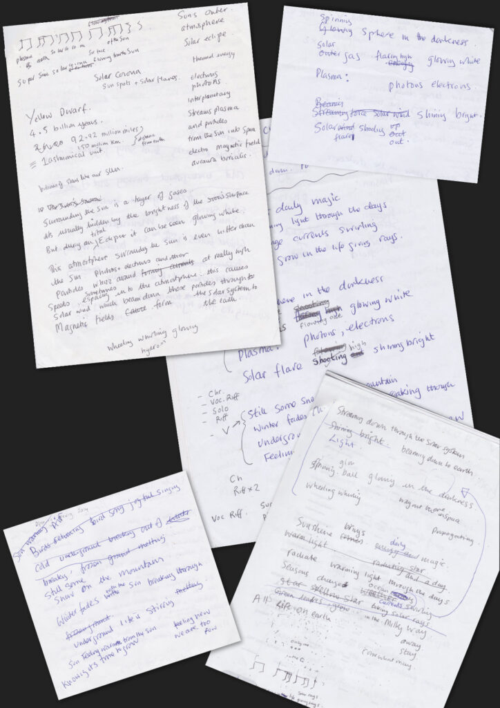 I started noting down some of the more evocative terms and descriptions. Supersonic, solar corona, plasma aura… Such rhythmic syllables and exotic sounding words. The first lines for ‘Sun Samba’ almost wrote themselves…